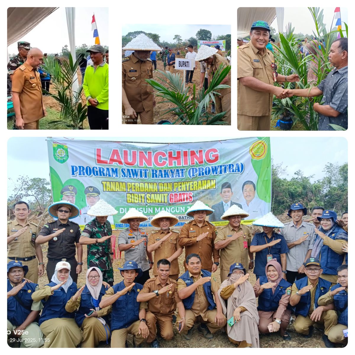 MUARABUNGO,BUNGOPOST.COM -Bupati Bungo H. Dedy Putra secara resmi meluncurkan Program Sawit Rakyat (Prowitra), sebanyak 30 ribu bibit sawit gratis mulai dibagikan kepada masyarakat pada tahap awal. Secara simbolis bibit sawit ini diberikan sekaligus menanam sawit sebagai tanda launchingnya Prowitra. Adapun kegiatan launching ini digelar di Dusun Mangun Jayo Kecamatan Muko-muko Bathin VII, selasa (29/07/2025).