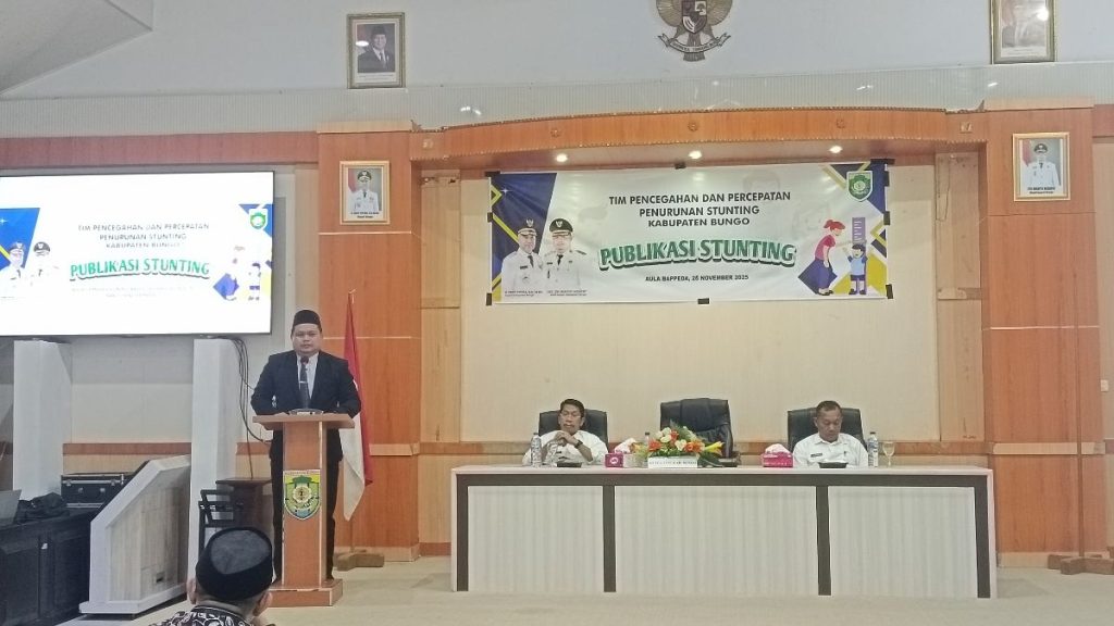 MUARABUNGO,BUNGOPOST.COM – Dalam rangka pencegahan dan percepatan penurunan stunting, Dinas Kesehatan Kabupaten Bungo menggelar pertemuan terkait Publikasi Stunting Kabupaten Bungo tahun anggaran 2025 pada Rabu (26/11/2025) di Aula Cempaka Kuning Bappeda.