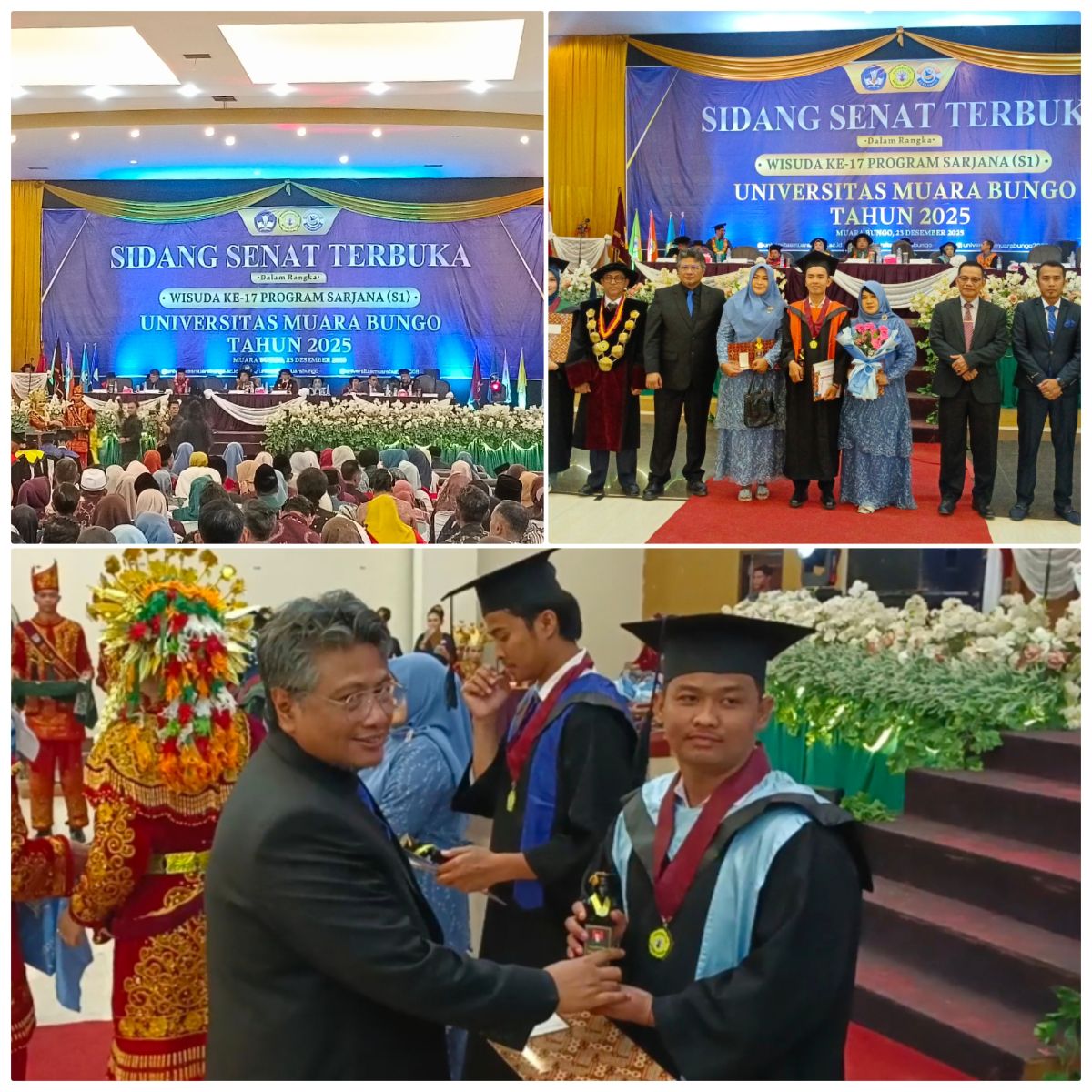 MUARABUNGO,BUNGOPOST.COM– Universitas Muara Bungo (UMB) menggelar Rapat Senat Terbuka Wisuda ke-XVII Program Sarjana (S1). Acara yang digelar di Ballroom Hotel Semagi ini dihadiri Ketua Yayasan Pendidikan Mandiri Muara Bungo (YPMMB), H. Andriansyah, S.E., M.Si.; mewakili Bupati Bungo, Kepala Dinas Pendidikan; Ketua DPRD Bungo; serta Rektor UMB, Dr. Syafrialdi, S.Pi., M.Si. yang didampingi segenap jajaran Wakil Rektor dan Dekan.