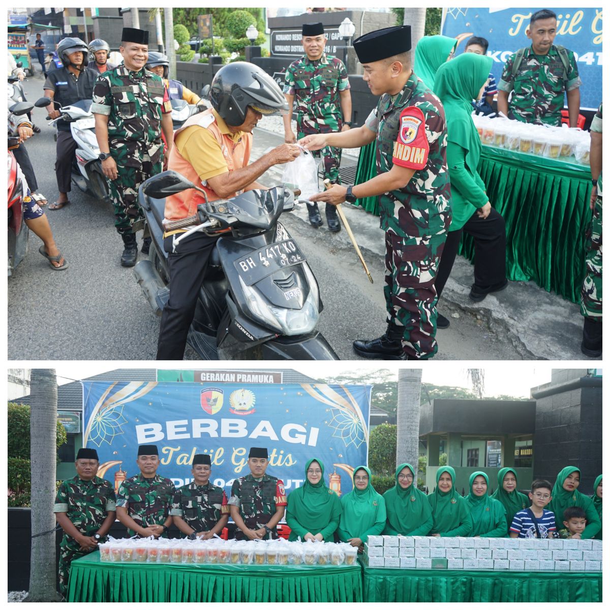 MUARABUNGO,BUNGOPOST.COM – Dalam rangka meningkatkan kepedulian sosial serta memaknai bulan suci Ramadan dengan berbagi kebaikan, Kodim 0416/Bute membagikan takjil kepada para pengendara roda dua maupun roda empat yang melintas di depan Makodim 0416/Bute, Jl. Perwira No.1 Kelurahan Bungo Barat, Kecamatan Pasar Muara Bungo, Kabupaten Bungo, Jumat (13/03/2026).